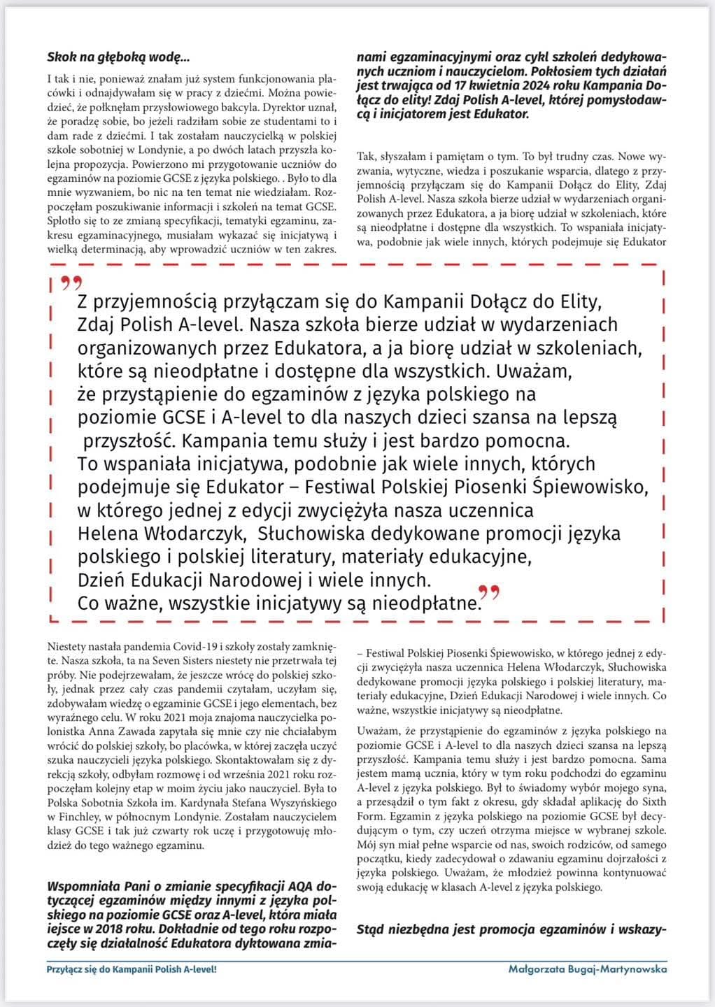 W kampanii promowania egzaminów z języka polskiego na poziomie GCSE i A-level wzięła udział nasza nauczycielka klasy GCSE p.Agnieszka D. Jesteśmy wdzięczni że nauczyciel naszej szkoły mógł dołączyć do tej akcji, opowiedzieć o naszej szkole oraz o przygotowaniach naszych dzieci do tych dwóch ważnych egzaminów.
