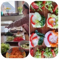 W sobotę 6 lutego uczniowie klasy 2b realizowali temat lekcji: Zdrowy tryb życia. Jedną z części zajęć było zrobienie zdrowych i kolorowych kanapek. Dzieci przygotowały potrzebne produkty i w domach, przed komputerami przygotowywały smaczne, pełne witamin kanapki. Praca przyniosła wszystkim wiele radości. Dzieci przekonały się, że najlepiej smakują kanapki wykonane własnoręcznie i wiedzą, jakie korzyści wynikają ze spożywania zdrowego jedzenia. Zajęcia były “bardzo smaczne”.
