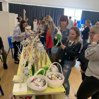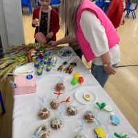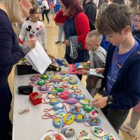 W okresie przygotowań do przerwy świątecznej nie zabrakło również tradycyjnego już u nas Kiermaszu Wielkanocnego. Rodzice oraz przyjaciele naszej szkoły, sprzedawali przeróżne ozdoby wielkanocne, które wcześniej przez długie tygodnie przygotowywali w domu. Wybór ozdób był ogromny. Zachwycały one swoim wyglądem oraz pomysłowością. Na stoisku dominowały króliczki i jajka wielkanocne oraz piękne, ręcznie wykonane koszyczki i serwetki. Nie zabrakło również książeczek i zabawek dla najmłodszych dzieci oraz słodkiego poczęstunku.
