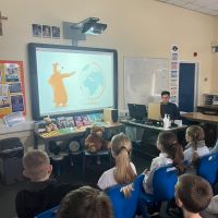 Na autorskim spotkaniu, Pan Wojciech opowiedział o tym jak rozpoczął przygodę z pisaniem książek oraz odpowiedział na wszystkie dociekliwe pytania naszych uczniów.