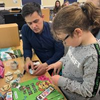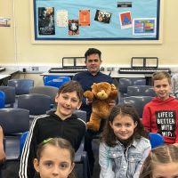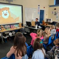 Zgromadzeni uczestnicy spotkania mieli niepowtarzalną okazję poznać osobiście pisarza literatury adresowanej do młodego czytelnika. Wojciech Filaber jest polsko-brytyjskim autorem książek dla dorosłych i dzieci. Wychował się na Mazurach. Ukończył w 2009 roku licencjat z psychologii na Middlesex University w Północnym Londynie. Jest też scenarzystą z kilkoma gotowymi scenariuszami, które czekają na producenta. Największą jednak popularność wśród dzieci zdobył poprzez autorskie książeczki o przygodach Niedźwiadka Wojtka i Pieska Ciapka, które przetłumaczono również na język angielski i chiński.